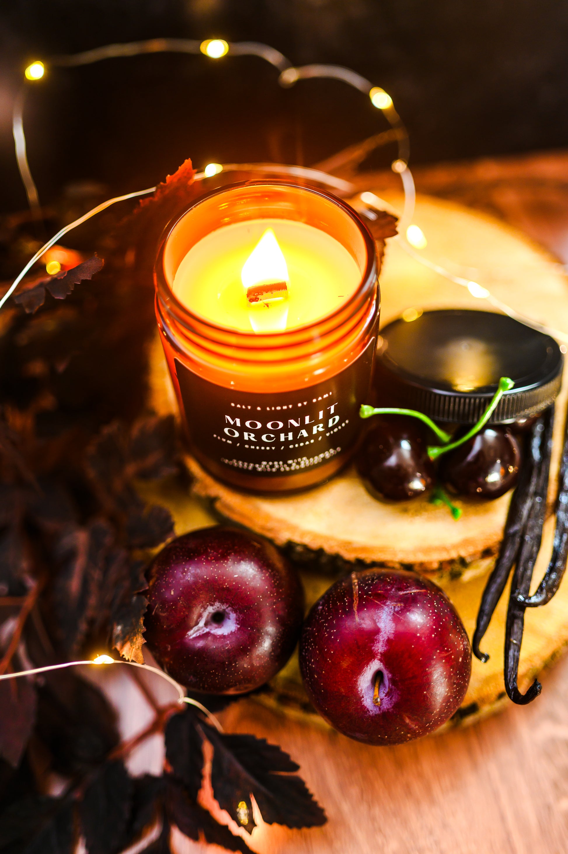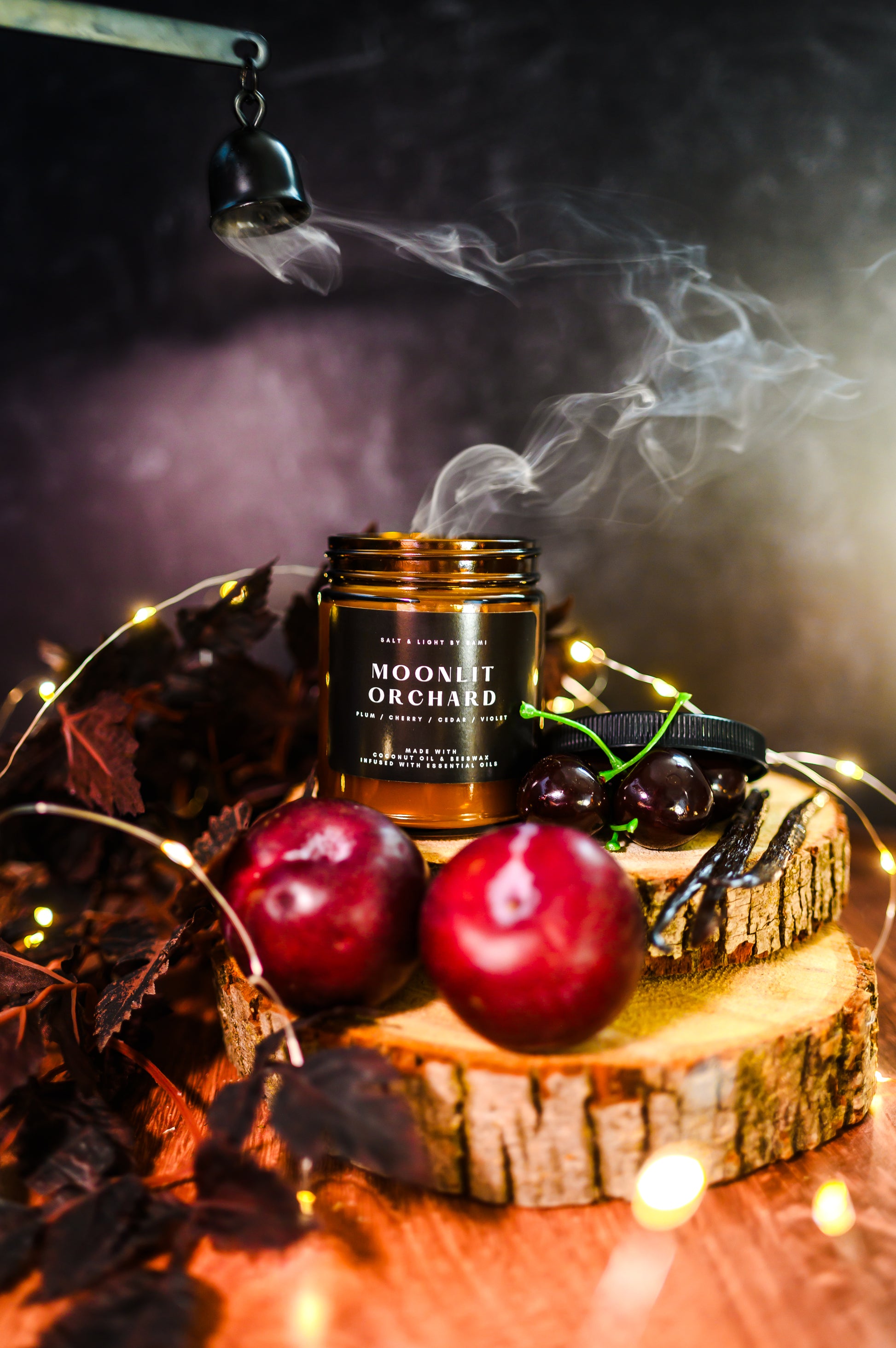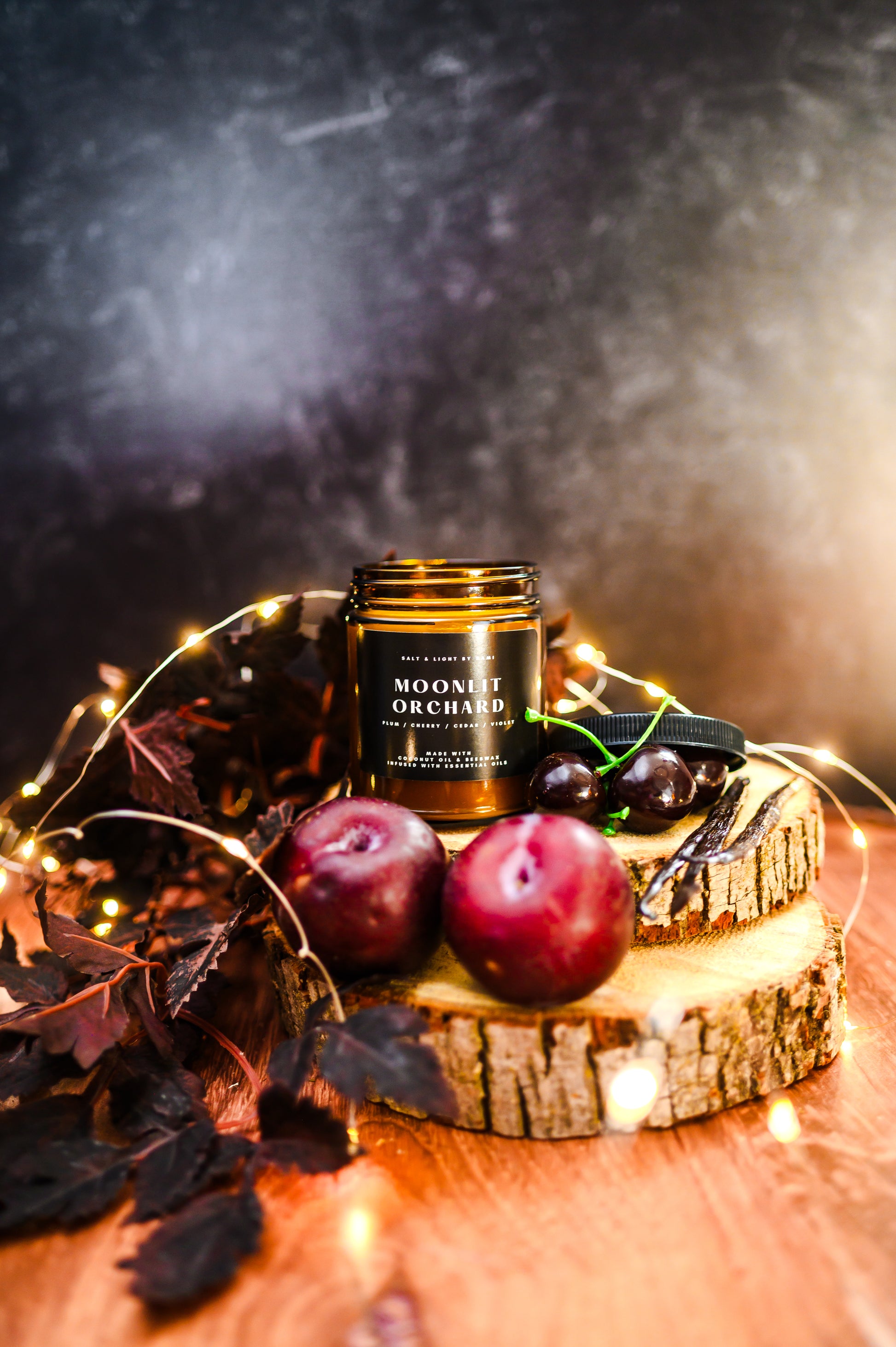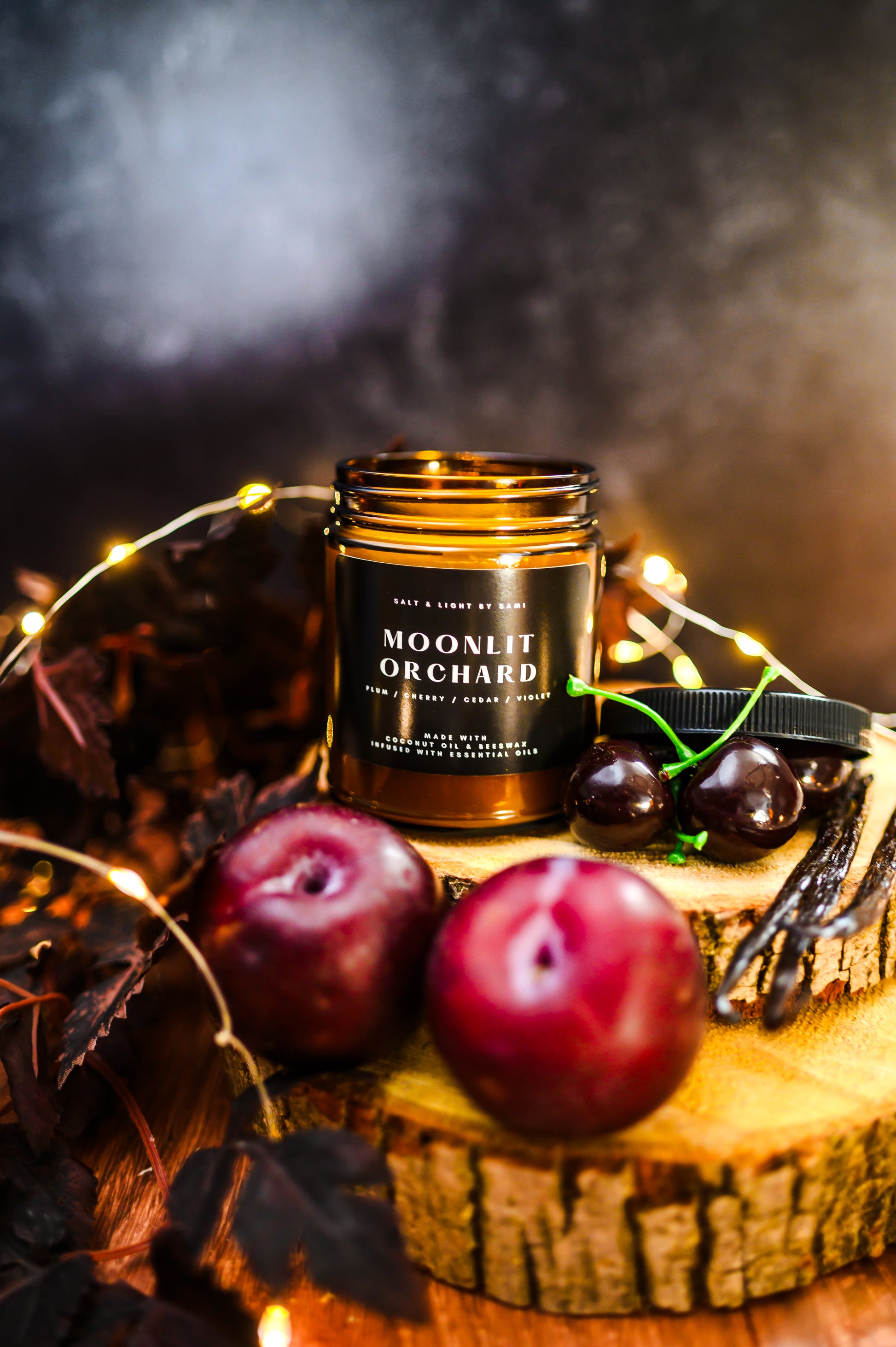 Our Moonlit Orchard candle evokes the mysterious and magical with its mesmerizing composition. Ripened plums, cherries, and oranges are tempered by soft violet and cinnamon, while the pleasing base of cedarwood and vanilla adds a sweet woodiness to this scent. Ever wondered what Halloween Town would smell like as a kid? I think it'd smell like this (; This is FALL!