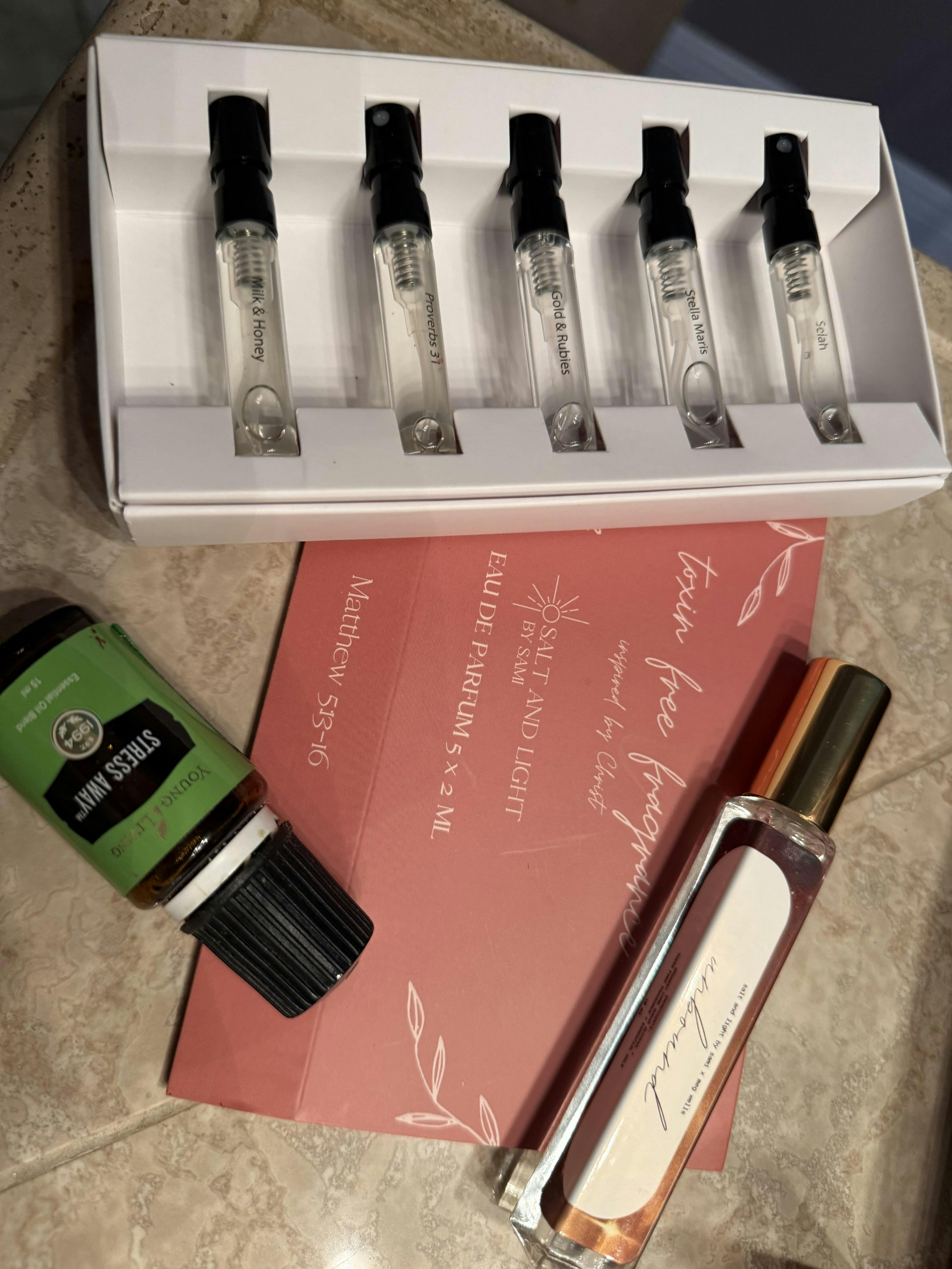 I was really happy with my samples. My favorite scents were Selah and Gold & Rubies. I hope she releases another sample pack with the other perfumes that weren't included (Magdalene, Eve, Dogwood, and Talitha Koum). I gave it 4 stars because one of the lids came cracked. However, the perfume did not leak out.